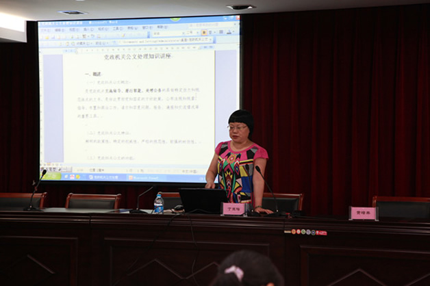 為促進公文寫作與處理工作的規(guī)范化、制度化、科學(xué)化,全面提升各投資企業(yè)公文業(yè)務(wù)水平。8月28日,集團邀請市法制辦監(jiān)督處丁玉梅處長對來自集團各投資企業(yè)行政辦公人員進行了公文基礎(chǔ)知識培訓(xùn)。 丁玉梅處長結(jié)合公文寫作的規(guī)定,針對企業(yè)常用文體的寫作方法等內(nèi)容,通過公文實例,就如何擬寫標(biāo)題、準確使用標(biāo)點符號,規(guī)范公文格式等作了重點分析。 此次公文寫作培訓(xùn)對規(guī)范公文處理,提高公文寫作能力,提升公司行政辦公質(zhì)量起了積極作用 |