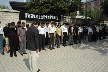 5月19日下午2:28,公司全體員工在辦公樓前集中,面向國(guó)旗和四川方向,向四川汶川大地震遇難者默哀三分鐘。在司辦公的外單位人員同時(shí)哀悼。黨委副書(shū)記、副董事長(zhǎng)徐憲華主持哀悼?jī)x式。