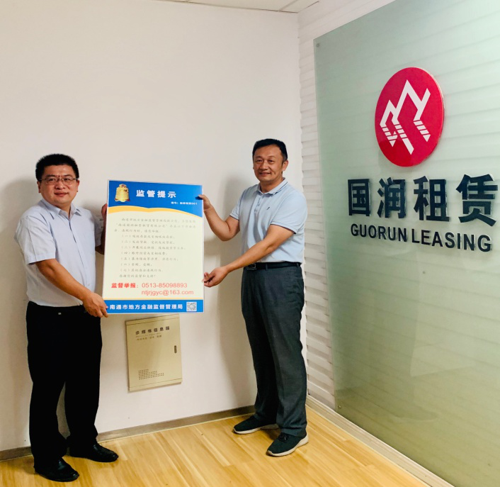 國潤租賃公司喜獲南通市金融監(jiān)管局001號監(jiān)管提示牌