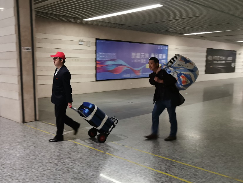 活動中,黨員同志共14人分別位于客運東站地下公交車上下客點、出租車上下客點、地上扶梯中轉(zhuǎn)點以及志愿服務(wù)崗臺咨詢點做方向指引、秩序維持、搬運行李等,遇到不知如何到達(dá)目的地的乘客,黨員志愿者熱心幫忙查詢路線、到達(dá)方式,并一路帶領(lǐng)將其護(hù)送至售票處、公交站臺。