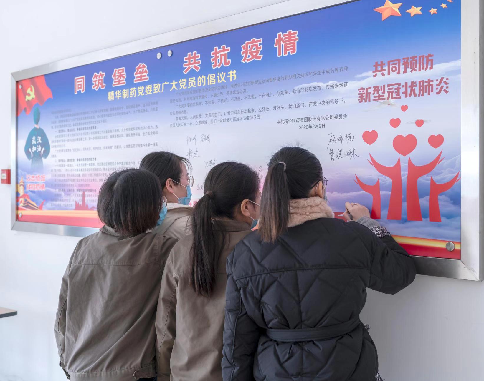 精華制藥黨委發(fā)出倡議書《同筑堡壘,共抗疫情》,倡議黨員同志擔(dān)好責(zé),帶好頭,萬眾一心,眾志成城,以高度的思想覺悟和政治站位爭做科學(xué)防控疫情的宣貫者、助力者和踐行者。黨委領(lǐng)導(dǎo)高度重視疫情防控工作,職責(zé)分工明確,制度規(guī)范到位,行動快速高效,一把手親自指揮、親自部署,各級黨員干部各級領(lǐng)導(dǎo)帶頭值班,沖在疫情防控第一線,組織黨員始終堅守崗位,守護(hù)群眾生命安全和身體健康,以實(shí)際行動踐行初心使命。除了做好自身防護(hù)工作和日常工作外,黨員同志們還紛紛要求主動值班,堅守崗位。黨員帶頭到生產(chǎn)車間一線參加正柴胡飲顆粒的包裝生產(chǎn),集團(tuán)公司科室全體人員也主動加入到包裝正柴胡飲顆粒的工作中去。 為保障職工安全健康,精華制藥防控領(lǐng)導(dǎo)小組召開專題會議,制定防控工作方案,通過微信群、電話等方式部署各項疫情防控工作。組織各職能部門、分公司、子公司負(fù)責(zé)人對單位員工情況進(jìn)行摸排調(diào)查。凡是有疫情較重地居住史或旅行史的人員,凡是與疫情較重地外來人員有密切接觸史的人員,凡是與疑似、確診病人有接觸的人員,凡是出現(xiàn)發(fā)燒、干咳等異常情況的人員,立即上報并自我隔離觀察。堅決杜絕疫情的傳入與傳播,努力踐行一個國有企業(yè)的社會責(zé)任。