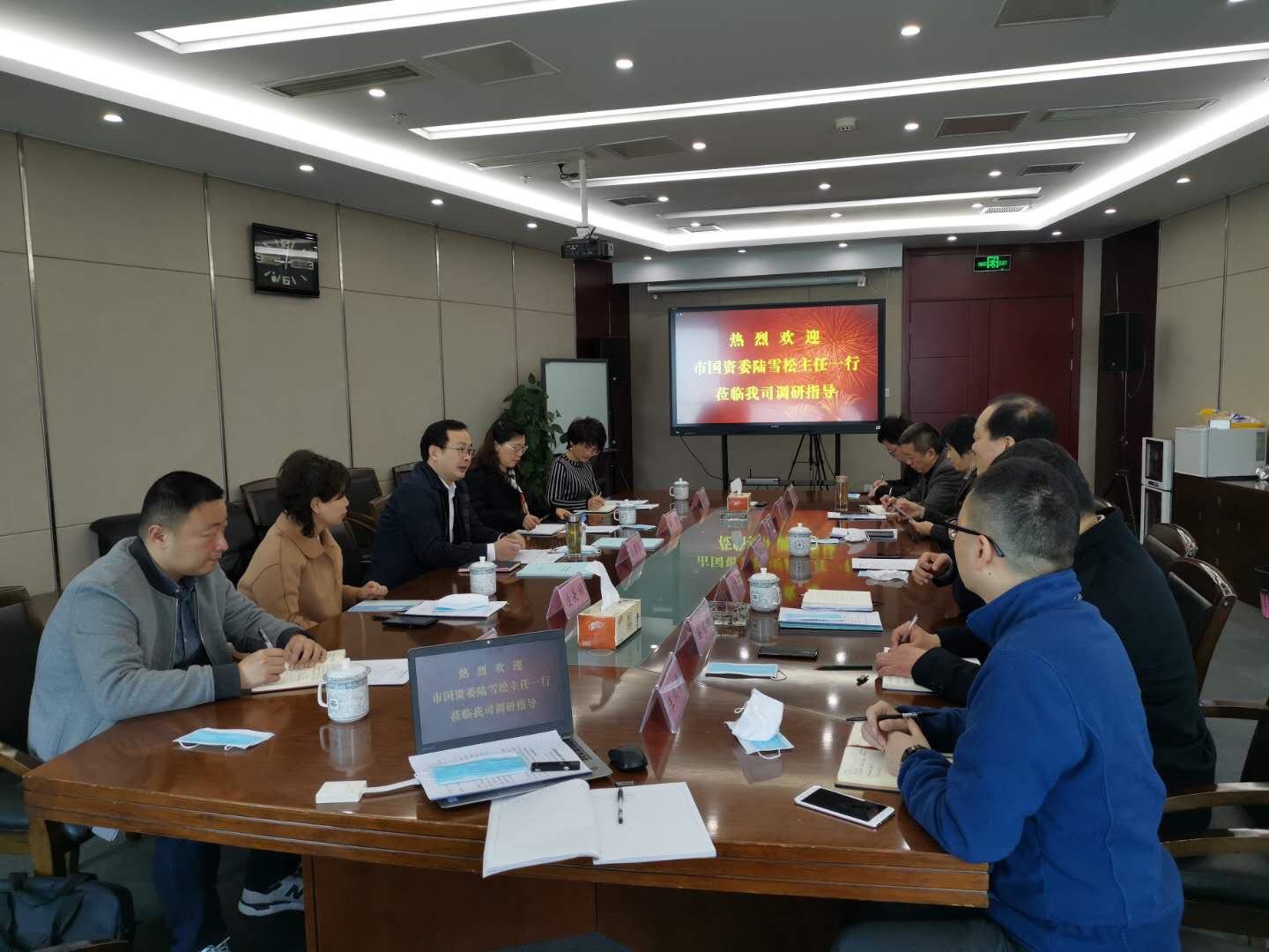 4月14日上午,國資委陸雪松主任、姚靜副主任、凌美娟調(diào)研員及國資委相關部門領導一行來南通投資管理有限公司調(diào)研指導工作。產(chǎn)控集團黨委副書記、副董事長、總經(jīng)理陸強新,副董事長、副總經(jīng)理顧建國及投資公司全體領導班子成員、中層人員參加了調(diào)研會。