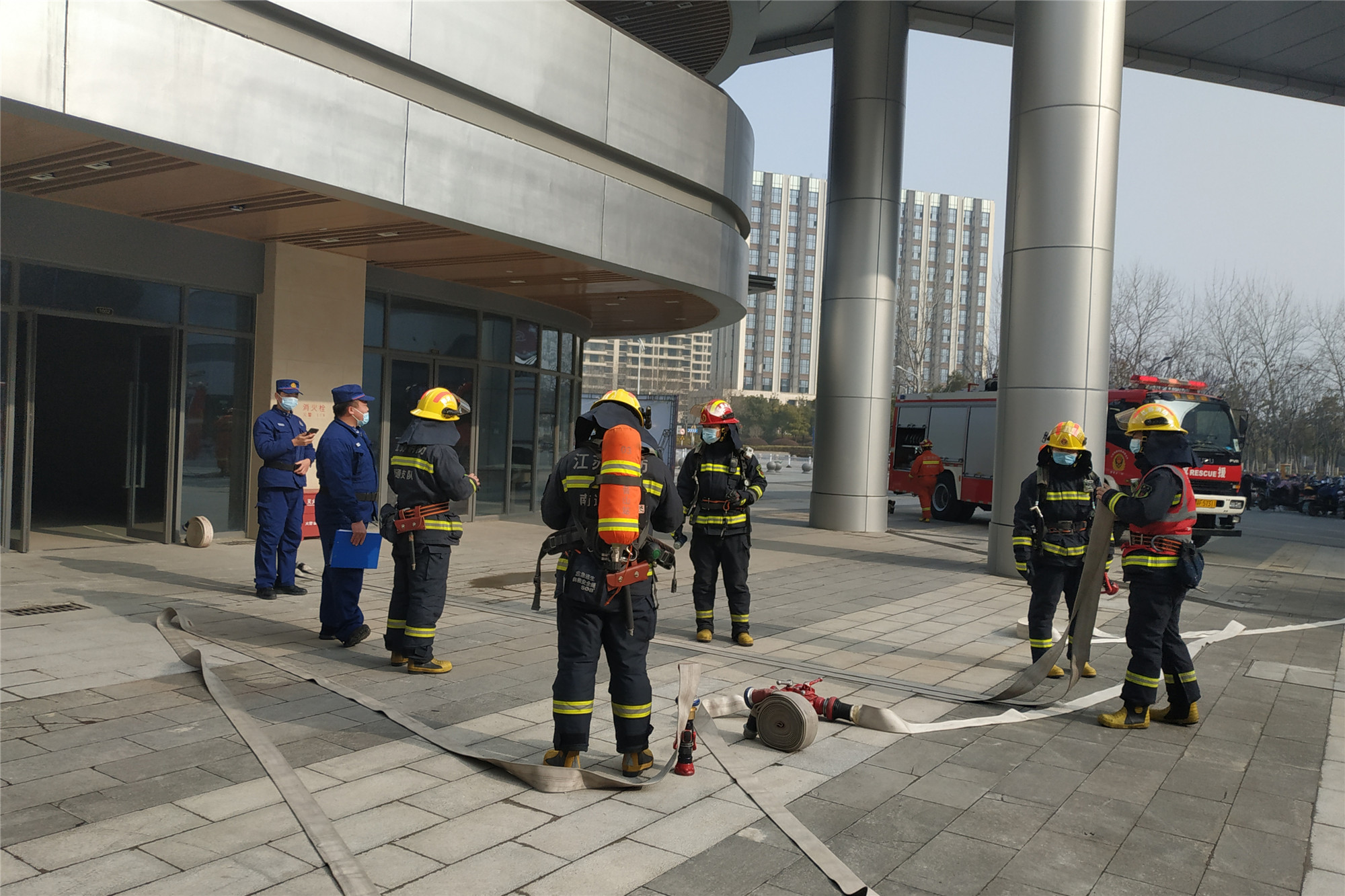 國(guó)城廣場(chǎng)是一個(gè)集商業(yè)、寫(xiě)字樓、公寓等為一體的商業(yè)綜合體。為提高消防救援對(duì)商業(yè)綜合體火災(zāi)事故的應(yīng)急處理能力,觀音山消防救援中隊(duì)聯(lián)合國(guó)城廣場(chǎng)于1月27日上午,在國(guó)城廣場(chǎng)開(kāi)展了商業(yè)綜合體消防檢查與滅火救援演練。