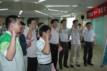 6月30日,集團(tuán)黨委召開紀(jì)念“七一”暨表彰大會(huì),集團(tuán)領(lǐng)導(dǎo)班子成員、所屬各基層黨組織負(fù)責(zé)人、優(yōu)秀黨員及優(yōu)秀黨務(wù)工作者代表70余人出席。 會(huì)上,集團(tuán)黨委授予南通科技黨委、江山股份黨委、石化總支、離休支部以及產(chǎn)控直屬支部“五好”黨組織稱號(hào),表彰了錢永康等47名優(yōu)秀黨員和陶坤山等23名優(yōu)秀黨務(wù)工作者。 南通科技黨委代表“五好”黨組織做了《緊扣中心服務(wù)大局、凝心聚力發(fā)揮作用》的交流發(fā)言,優(yōu)秀黨務(wù)工作者及優(yōu)秀黨員代表也結(jié)合各自實(shí)際,介紹了圍繞經(jīng)濟(jì)工作、創(chuàng)新開展黨建工作的經(jīng)驗(yàn)和堅(jiān)定信念、立足本職、爭當(dāng)優(yōu)秀黨員的先進(jìn)事跡。 集團(tuán)黨委書記、董事長陳照東代表黨委作報(bào)告。他總結(jié)了2009年黨建工作,通報(bào)了今年上半年集團(tuán)經(jīng)濟(jì)運(yùn)行和主要工作情況,以“突出重點(diǎn),全面完成年度目標(biāo)任務(wù)”為題就下半年經(jīng)濟(jì)工作提出要求,以“開展創(chuàng)先爭優(yōu)”和“爭做勤廉表率”為重點(diǎn)就下一階段黨建工作作出部署。 會(huì)議號(hào)召各級黨組織和全體黨員抓住經(jīng)濟(jì)復(fù)蘇機(jī)遇,將黨建工作與經(jīng)濟(jì)工作緊密結(jié)合,抓好基層組織和黨員隊(duì)伍建設(shè),加強(qiáng)黨風(fēng)廉政建設(shè)和監(jiān)督保障工作,為完成全年目標(biāo)、實(shí)現(xiàn)經(jīng)濟(jì)跨越發(fā)展而努力拼搏!