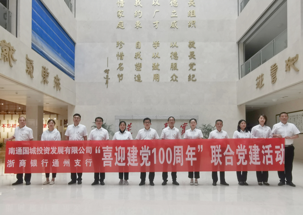 為慶祝中國共產(chǎn)黨成立100周年,將“學(xué)黨史、悟思想”落到實處,6月25日,南通國城投資發(fā)展有限公司與浙商銀行通州支行開展“喜迎建黨100周年”聯(lián)合黨建活動。