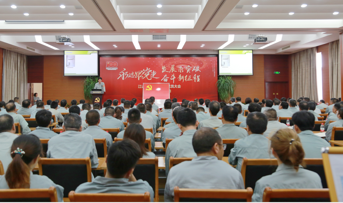 2021年6月30日,中共江山股份黨委舉行2021年度黨員大會,隆重慶祝中國共產黨百年華誕。江山股份200多名黨員參加了大會。