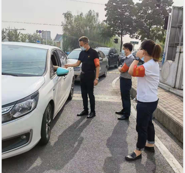 園區(qū)防疫是阻斷疫情傳播最基礎(chǔ)、最關(guān)鍵的環(huán)節(jié)。由于入駐企業(yè)較多,當(dāng)前智匯產(chǎn)業(yè)園門崗排查任務(wù)重,特別是早高峰時段,車輛人員集中,導(dǎo)致通行不暢。為積極投身園區(qū)疫情防控工作,國盛黨支部主動聯(lián)系園區(qū),組織黨員先鋒隊(duì)和青年突擊隊(duì)分別于8月26日和27日連續(xù)兩天開展防疫志愿活動。早上八點(diǎn),黨員和青年志愿者們佩戴紅袖章,為進(jìn)入園區(qū)的人員測量體溫并檢查行程信息、講解防疫知識,讓群眾從思想上重視、行動上配合,牢記勤洗手、戴口罩、常消毒的防疫要點(diǎn)。
