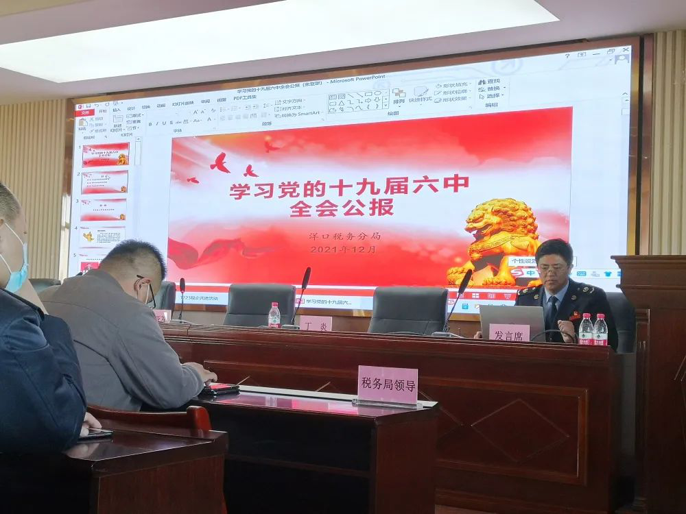 由洋口稅務(wù)分局黨支部朱亞軍書記領(lǐng)學(xué)《十九屆六中全會公報》,森萱醫(yī)藥黨總支第一黨支部書記劉宇峰對《中共中央關(guān)于黨的百年奮斗重大成就和歷史經(jīng)驗的決議》學(xué)習(xí)輔導(dǎo),從決議出臺背景,黨史四大歷史階段等內(nèi)容深入淺出地進行了講解,引導(dǎo)廣大黨員重溫黨史,感悟全會精神。 活動最后黨總支書記吳玉祥對黨總支全年黨建共建工作進行了總結(jié),同時要求全體黨員學(xué)習(xí)貫徹全會精神是今后一個時期的重要政治任務(wù),用全會精神統(tǒng)一思想、凝聚共識、堅定信心、增強斗志。 |