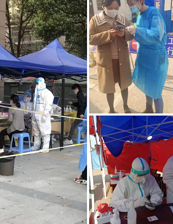 “您好,請配合我們測量體溫”、“請大家?guī)Ш每谡帧?、“請?zhí)崆皽?zhǔn)備好身份證”······他們在現(xiàn)場協(xié)助查驗(yàn)雙碼、測量體溫、維護(hù)現(xiàn)場秩序、對老人進(jìn)行掃碼幫助等,大慶社區(qū)、大南社區(qū)、濠東社區(qū)等均可見揚(yáng)子碳素志愿者們忙碌的身影。