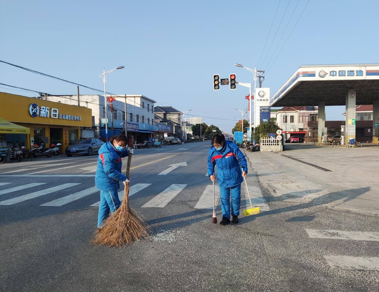 冬日的栟茶小鎮(zhèn),溫暖的陽光照耀,為寒冷的天氣帶來一絲暖意。中海油南通公司栟茶加油站站前道路,和往常一樣,車輛人流來來往往,當班員工葛紅和蔡亞明在站內(nèi)引導(dǎo)客戶進站加油。