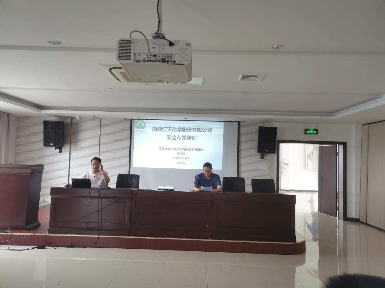 為全面貫徹習(xí)近平總書記關(guān)于安全生產(chǎn)的重要論述,進(jìn)一步提高全員安全意識,提升崗位人員的HSE實(shí)操技能,加強(qiáng)承包商作業(yè)管理,6月13日下午,南通江天化學(xué)股份有限公司結(jié)合“人人講安全、個個會應(yīng)急”的安全生產(chǎn)月活動主題,召開了半年度主要負(fù)責(zé)人HSE培訓(xùn)大會。本次大會特邀江蘇安泰安全技術(shù)有限公司董事長王錫濤同志為公司全體員工、承包商代表做安全生產(chǎn)專題培訓(xùn)講座。