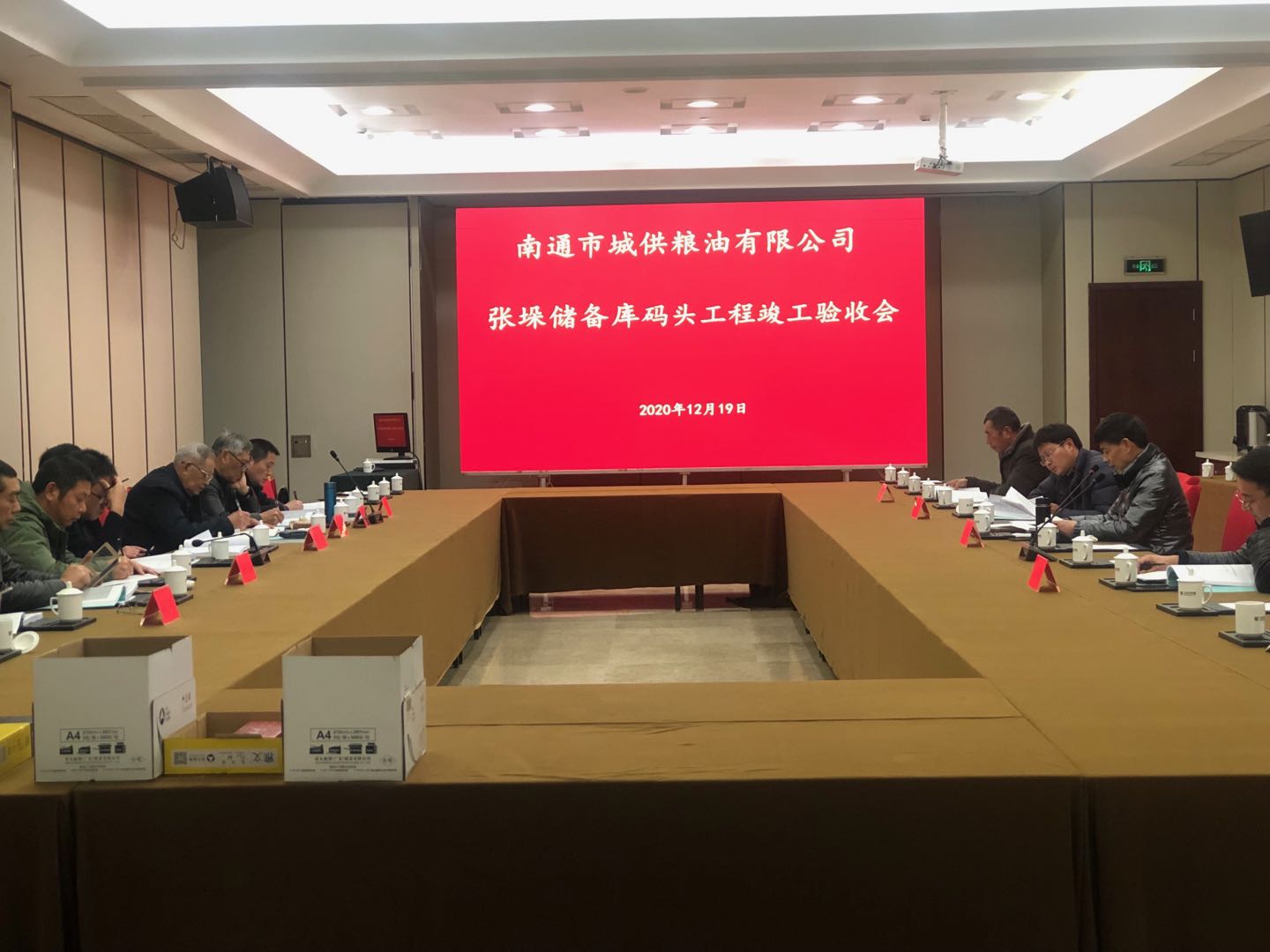 根據(jù)《港口工程建設(shè)管理規(guī)定》,2020年12月19 日南通市城供糧油有限公司在海安市組織召開了南通內(nèi)河港海安港區(qū)張垛儲備庫碼頭工程驗收會議。張明清擔(dān)任此次驗收組組長,梅云慶高級工程師等6位專家參與此次驗收。